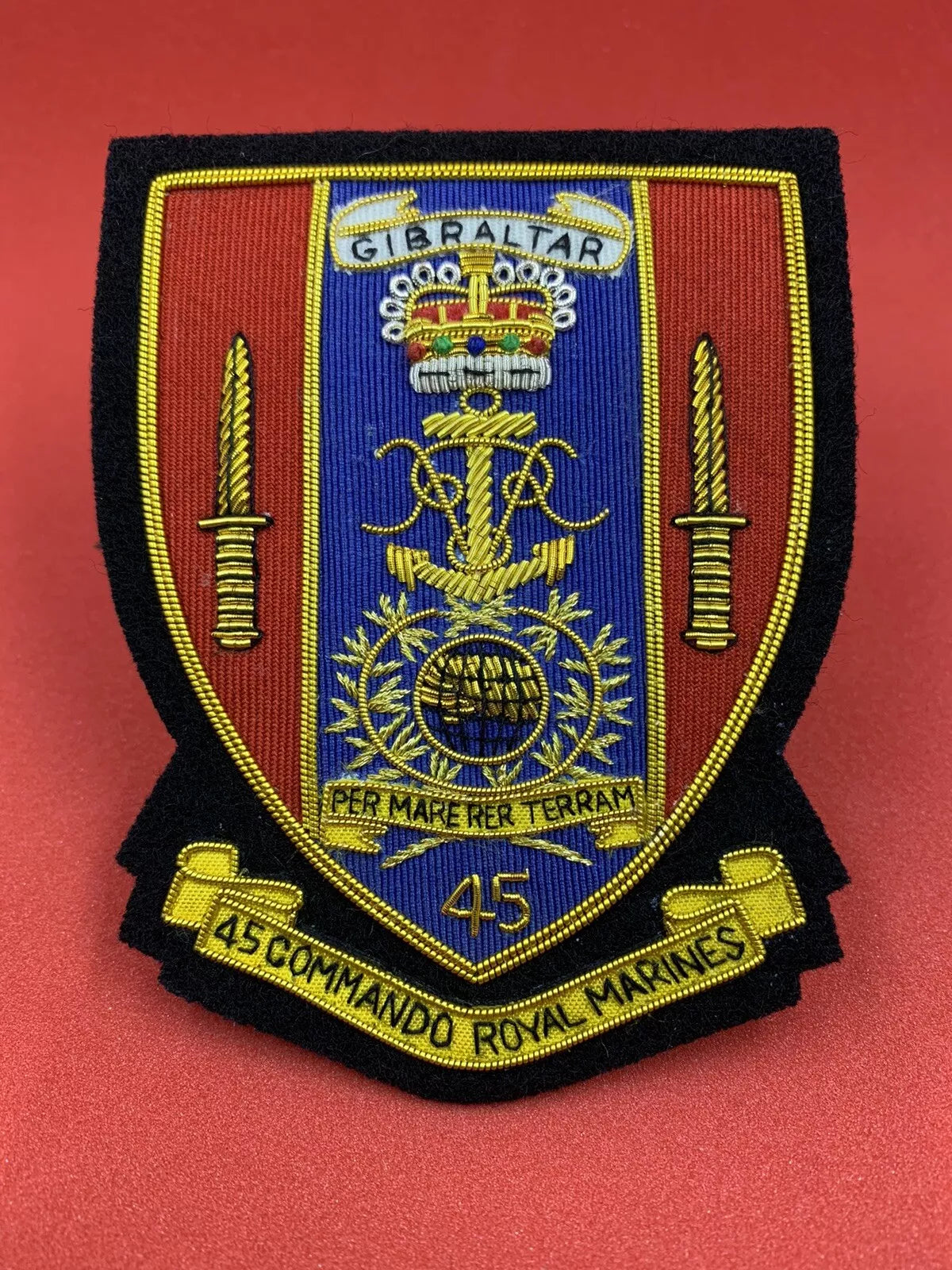 45 Commando Royal Marines blazer badge Handmade Bullion & Wire Badge (Gibraltar).