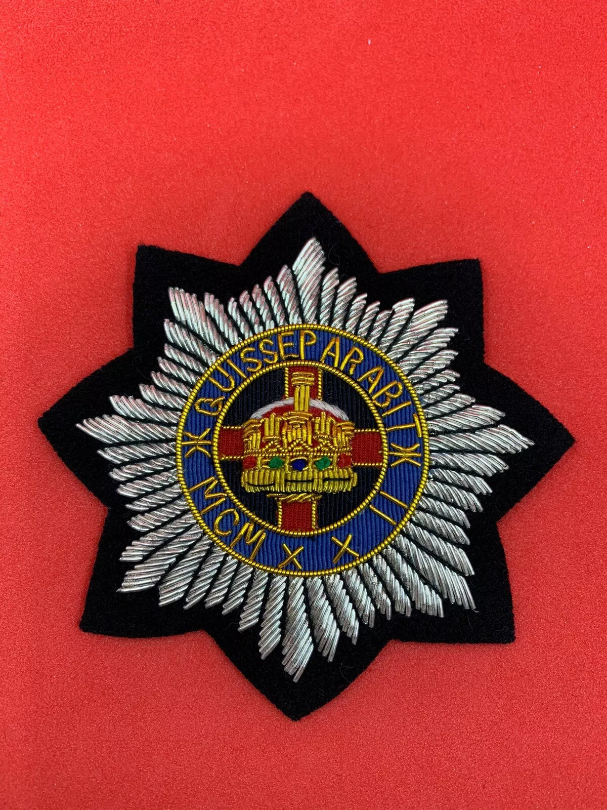 4th /7th ROYAL DRAGOON GUARDS BLAZER BADGE HAND EMBROIDERED WITH BULLION & WIRE.