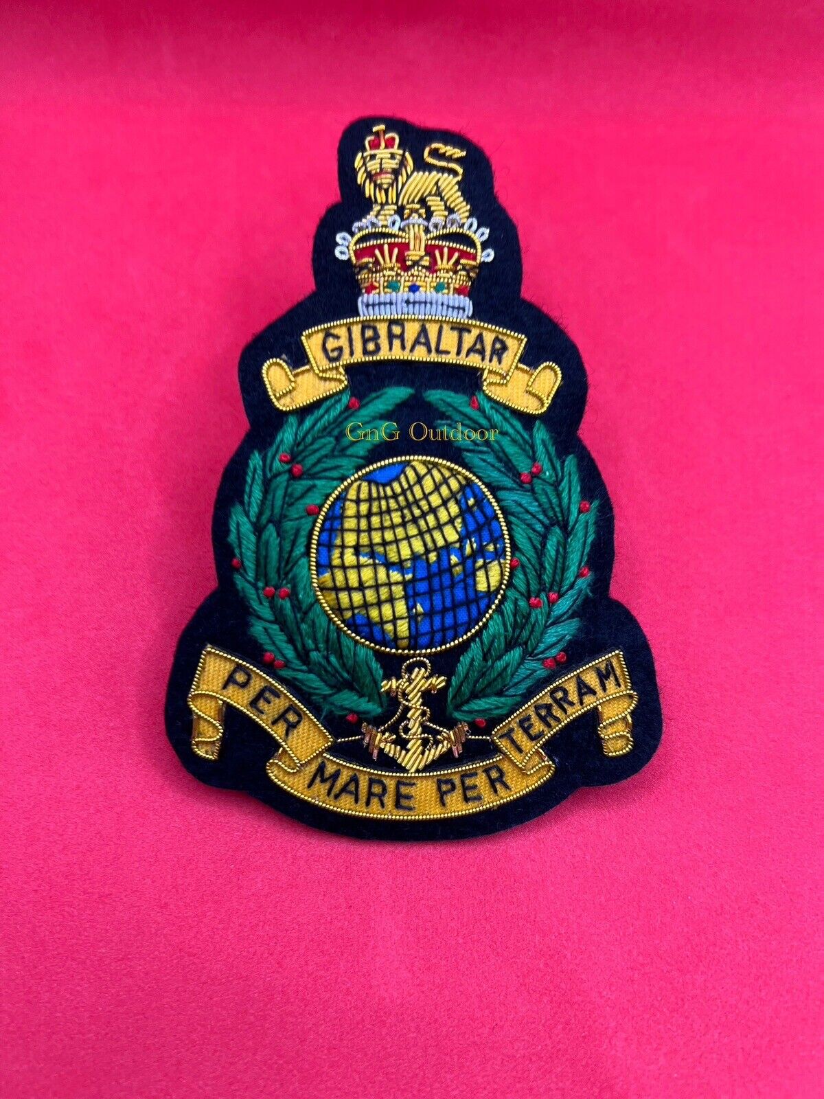 The Corps of Royal Marines Blazer Badge RM Green Laurel Embroidered Bullion And Wire Blazer Badge