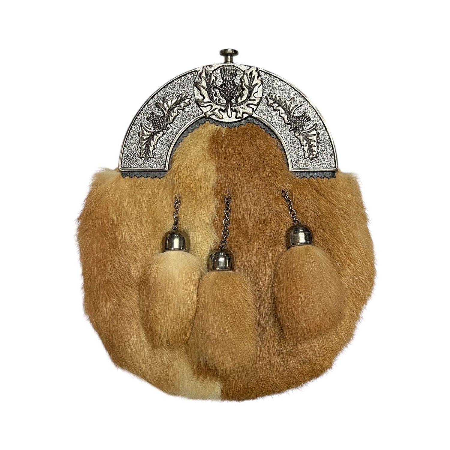 Brown Fur kilt Sporran Antique Thistle Cantle 3 Tassels Kilt Sporran With Chain