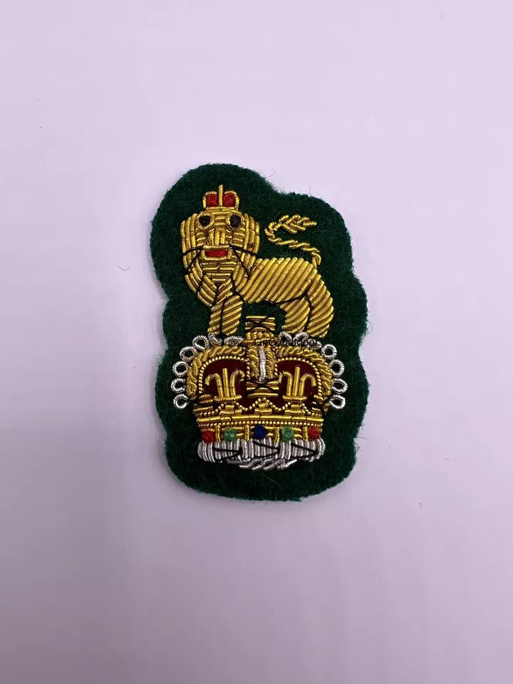 The General Staff Officer Beret Badge on Green is a hand-embroidered bullion wire badge, designed for a distinguished look on green berets. It combines traditional craftsmanship with military prestige, making it a standout accessory.