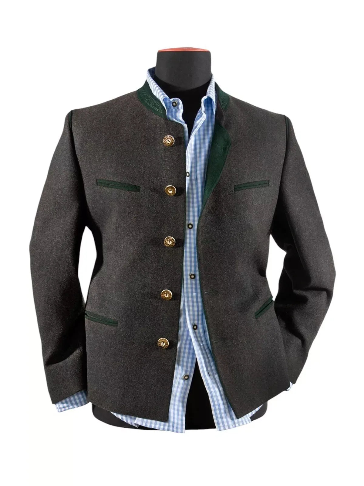 German Bavarian Jacket Charcoal Grey Wool Jacket | Traditional Custom Jacket