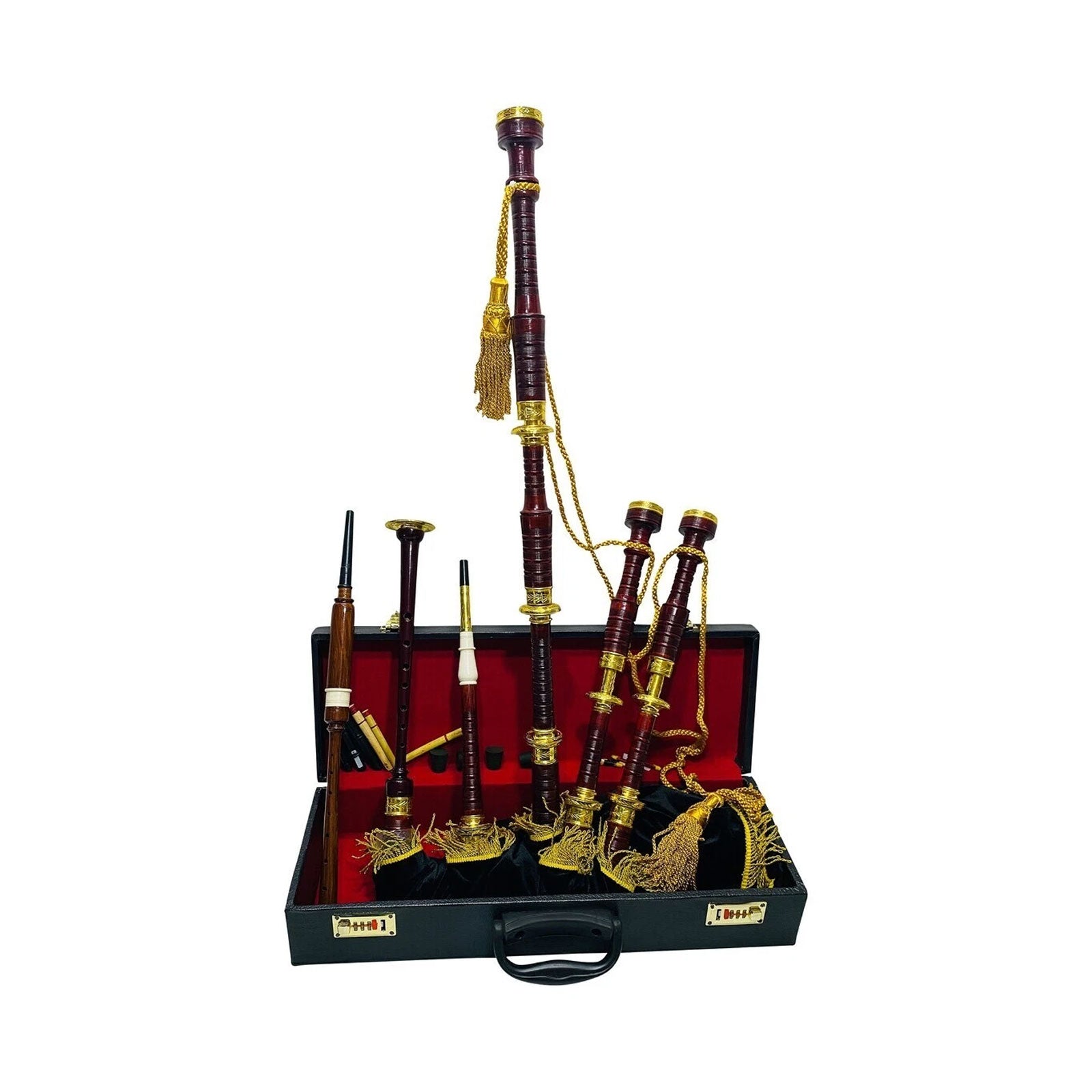 Great Scottish Highland Bagpipes Golden Engraved Brass Mounts With Black Velvet Cover FREE HARD CASE