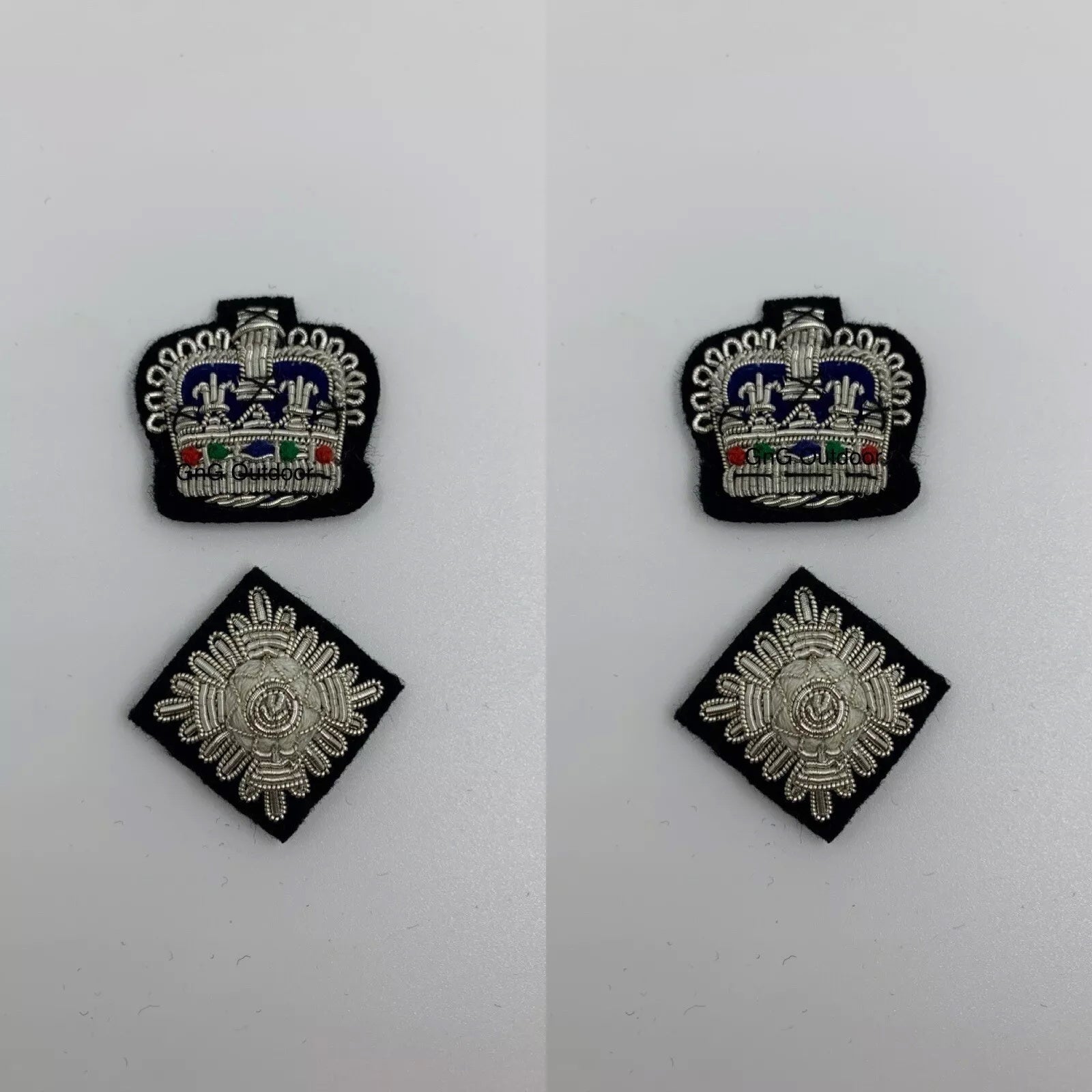 Hand Embroidered Silver Bullion Wire Rank Set Shoulder Rank Crown And Pip