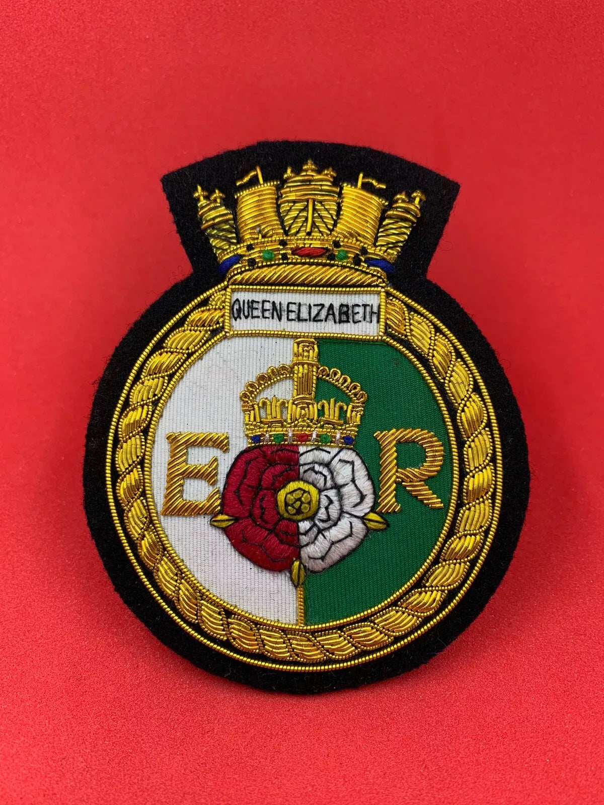 HMS Queen Elizabeth Bullion And Wire Blazer Badge Royal Navy Embroidered Badge