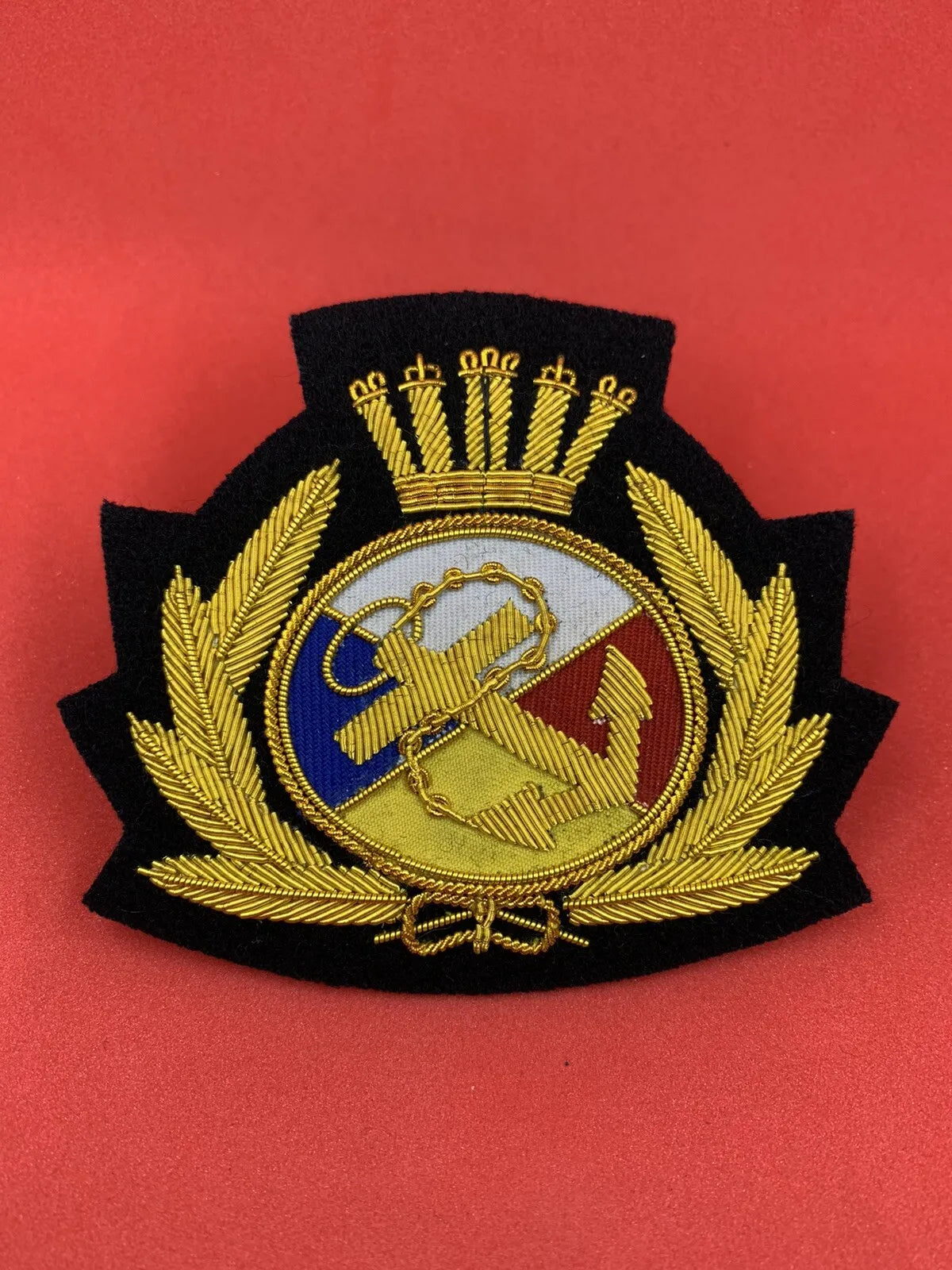 HS Royal Navy Merchant Badge Bullion Wire Hand Embroidery Blazer Badge.