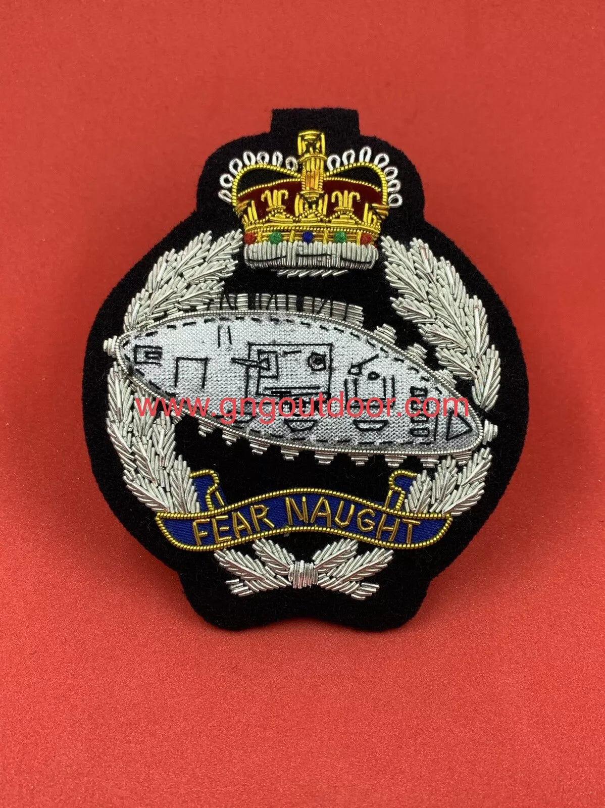 HS Royal Tank Regiment Blazer Badge Hand Embroidered Bullion & Wire Blazer Badge.