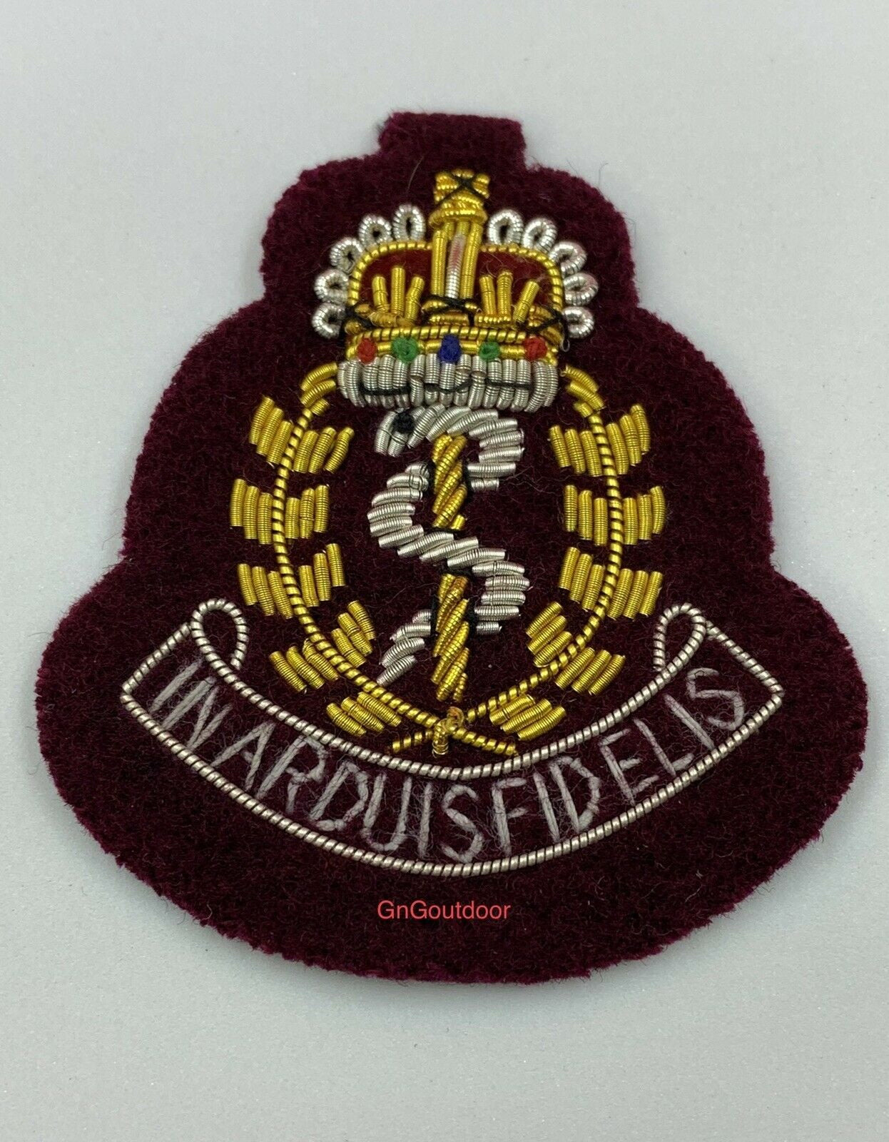 RAMC Officers Beret Badge Royal Army Medical Corps Bullion Wire Badge on Maroon