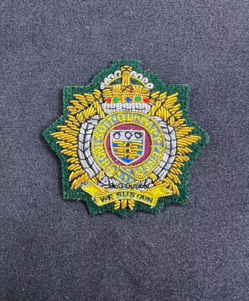 The King’s Crown Royal Logistics Corps Cap Badge is an embroidered badge featuring the RLC insignia on green felt. With intricate detailing and the iconic King’s Crown, it adds a touch of tradition and distinction to any cap.