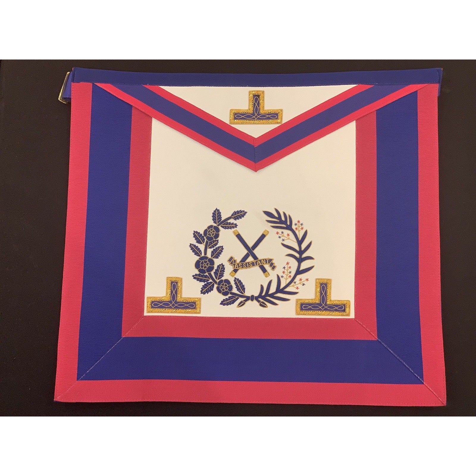 Handmade mark grand rank undress Apron made on blue red cloth and real leather, gold bullion and wire levels, thread and gold wire stitching, back pocket, belt and buckle