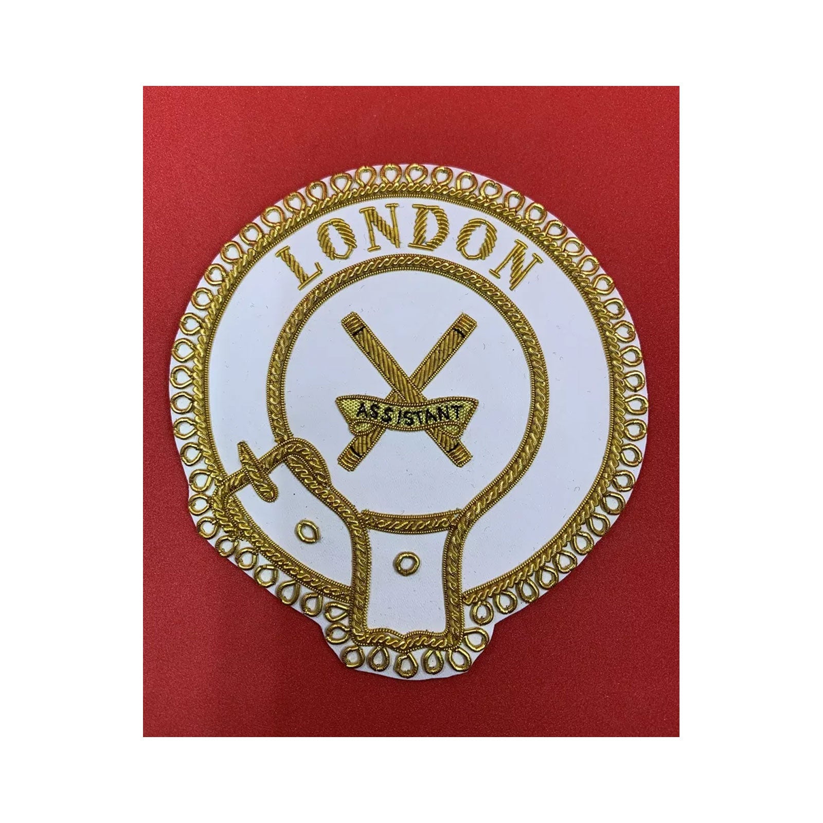 This badge is more than just an accessory; it is a symbol of your dedication and service within the Masonic community. Its refined craftsmanship ensures that it stands out, making it a significant addition to your full dress apron. Ideal for formal Masonic occasions, this badge not only enhances the aesthetic of your regalia but also carries with it the pride and tradition of the London Province. Whether you are stepping into a new role or continuing your journey, this badge serves as a lasting reminder of the honor and commitment associated with your position.