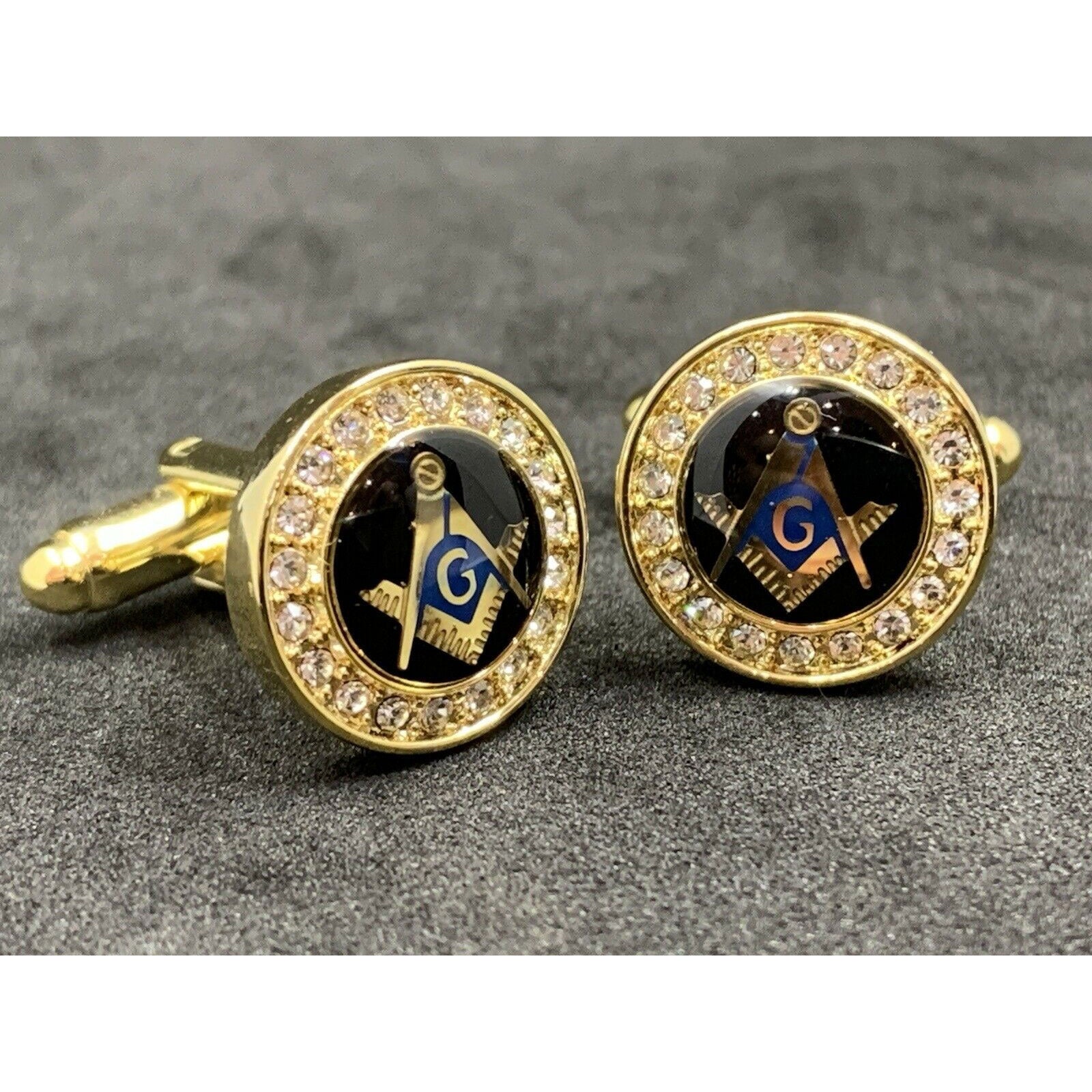 Masonic Freemason Cufflinks Square Compass Gold Plated With Imitation Diamonds