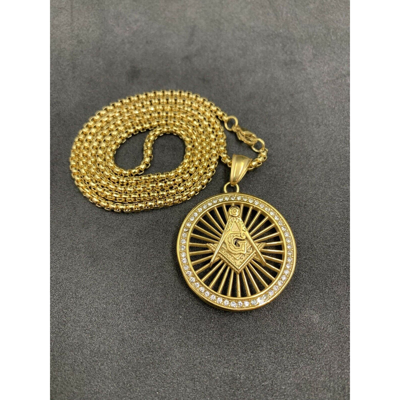 Masonic Square And Compass Gold Plated Neck Pendant With Imitation Stones