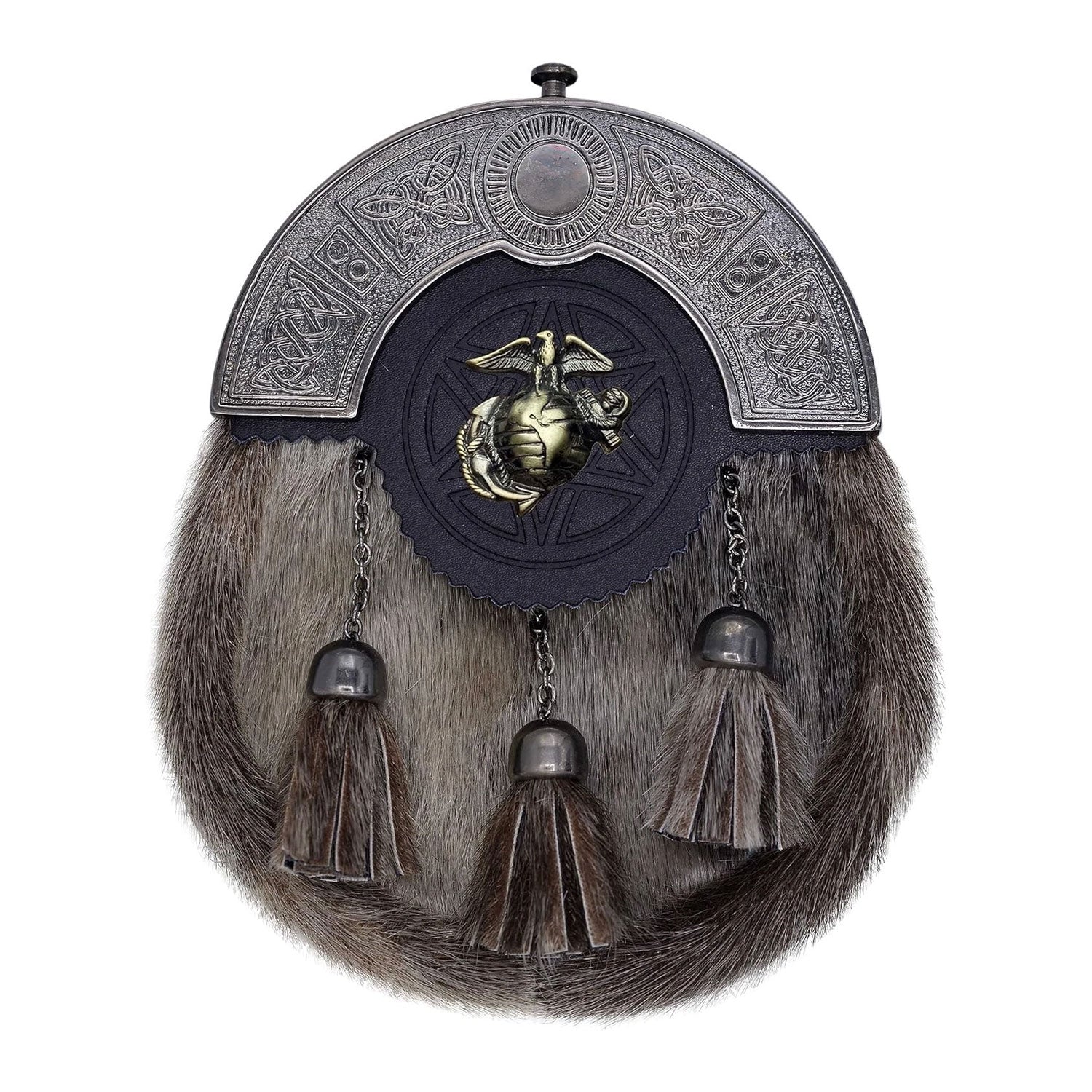Men's Antique US Marine Badge Sporran 3 Tassels Celtic Cantle With Chain Belt