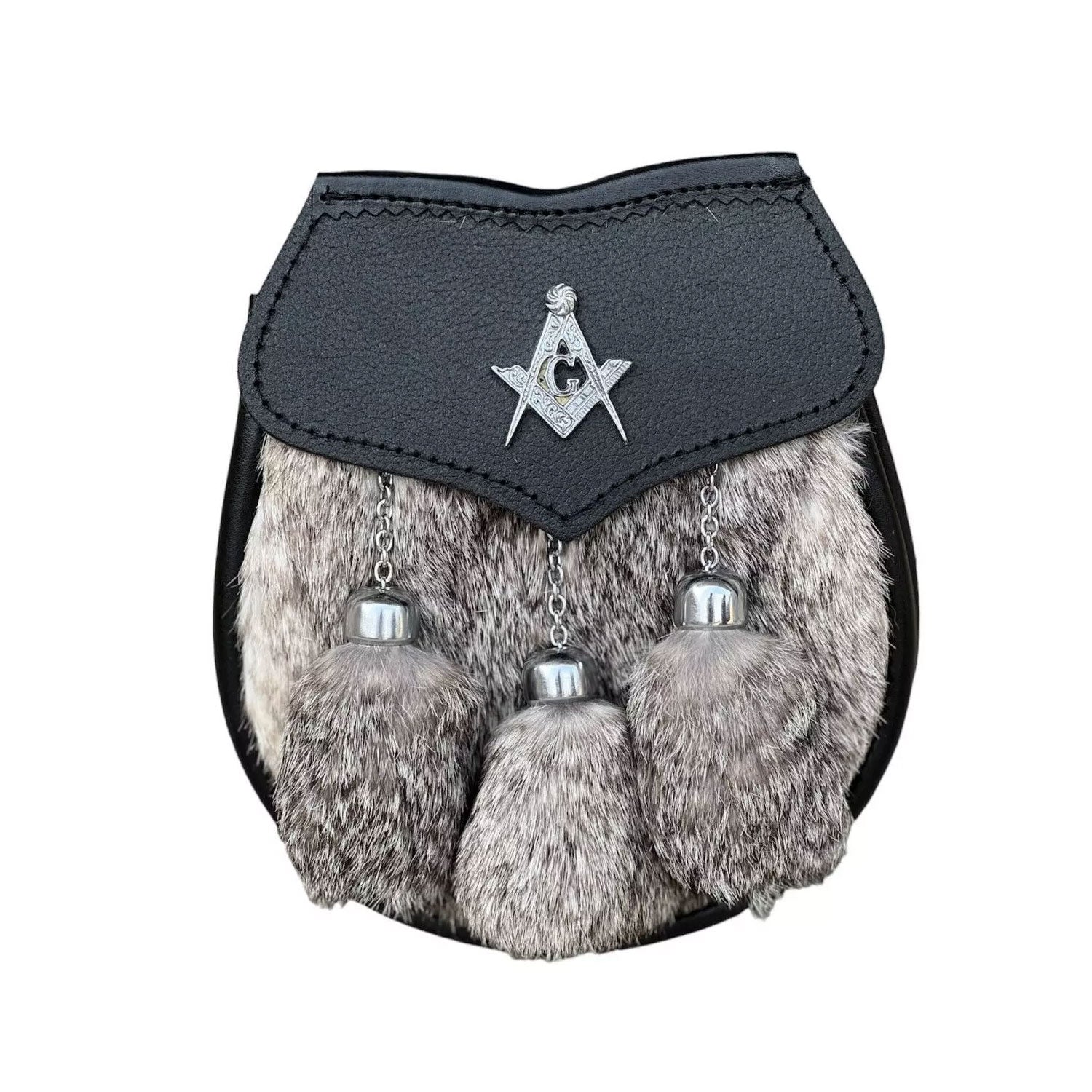 Men's Scottish Full Dress Grey Fur Sporran 3 Fur Tassel Sporran With Chain Belt