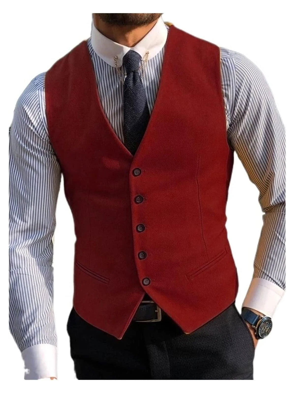 Men's Wedding Burgundy Wool 5 Button Vest Scottish Kilt Waistcoat