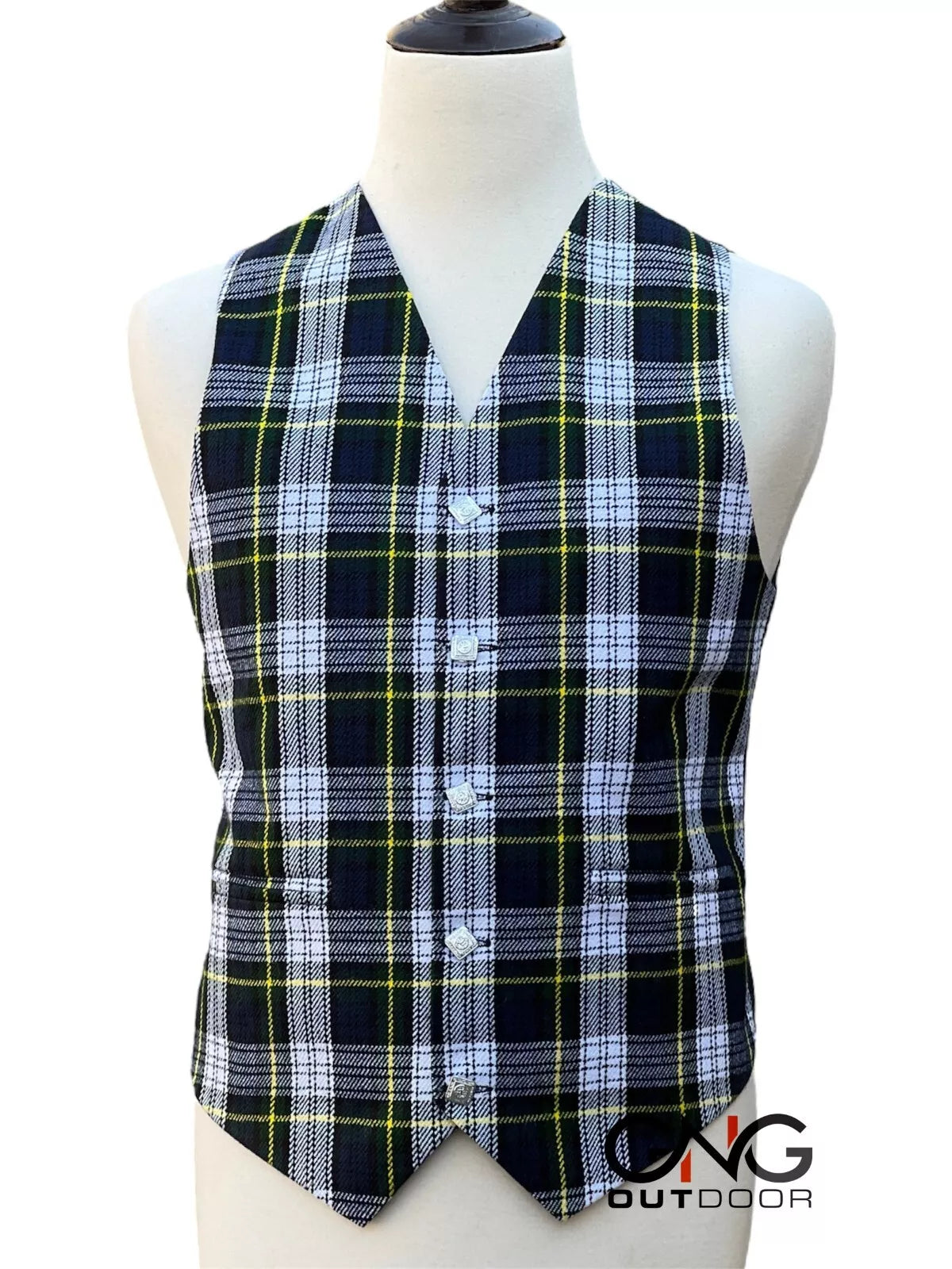 The Dress Gordon Tartan waistcoat, also known as a kilt vest or wedding vest, is a timeless piece of Scottish Highland attire. This sleeveless jacket, traditionally crafted from vibrant tartan fabric, adds a touch of heritage and individuality to any ensemble.