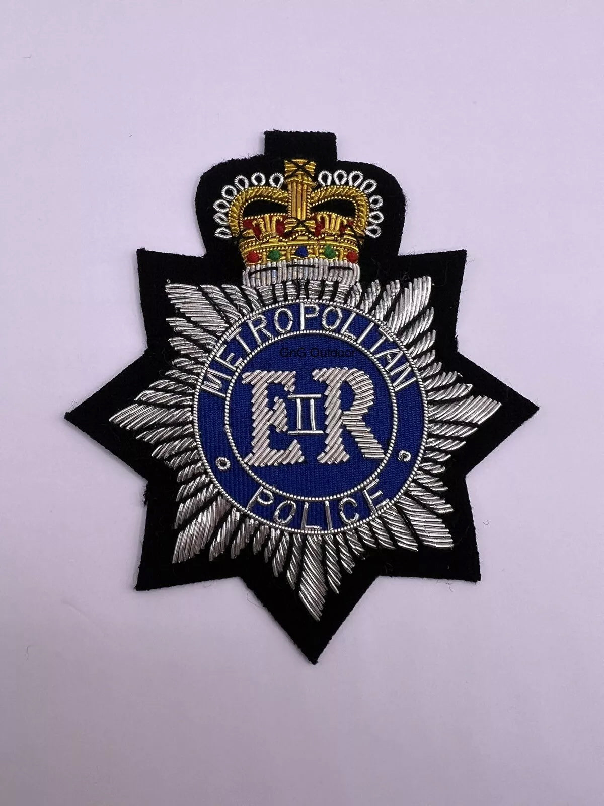 The Metropolitan Police Hand Embroidered Bullion Wire Blazer Badge is a finely crafted replica, featuring detailed hand embroidery. This high-quality badge is ideal for collectors or anyone seeking an authentic representation of the Metropolitan Police insignia.