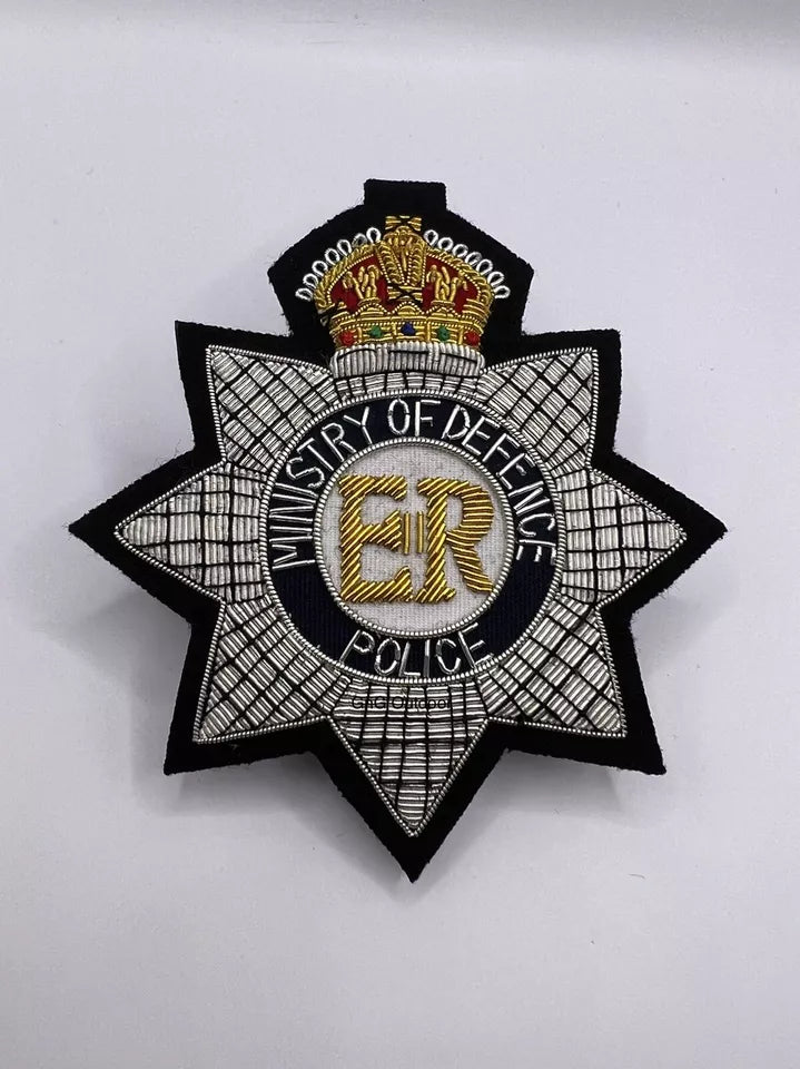 The Ministry of Defence Police Blazer Badge is a hand-embroidered bullion wire replica, crafted to reflect the official MOD Police insignia. Ideal for collectors or uniform use, it adds a touch of authenticity and prestige.