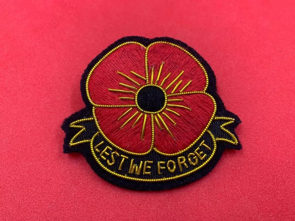 Poppy Badge Lest We Forget Badge Remembrance Day Embroidered Bullion Wire Poppy