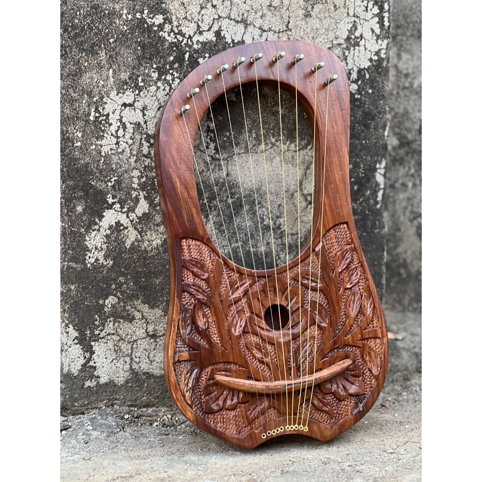 Scottish Rosewood Flower Lyre 10 Strings Harp Lyre Design Premium Quality Lyre With Free Tuning Key | Free Extra Strings