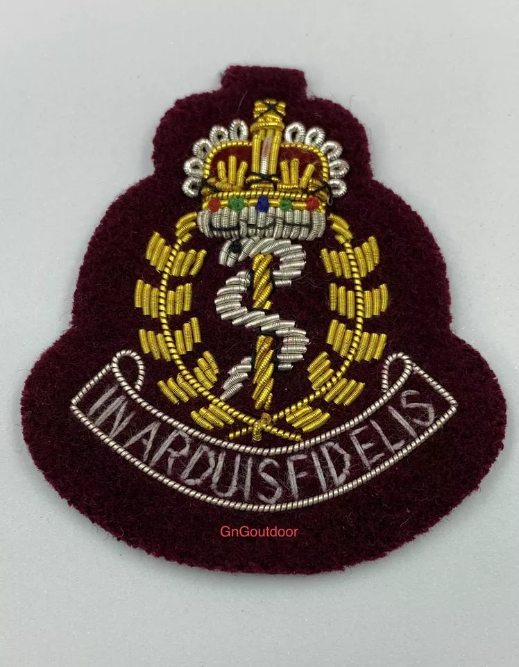 The Royal Army Medical Corps Beret Cap Badge is a hand-embroidered bullion wire badge on maroon, designed to represent the RAMC with distinction. Ideal for berets, it combines traditional craftsmanship with a striking appearance, honouring the corps’ legacy.