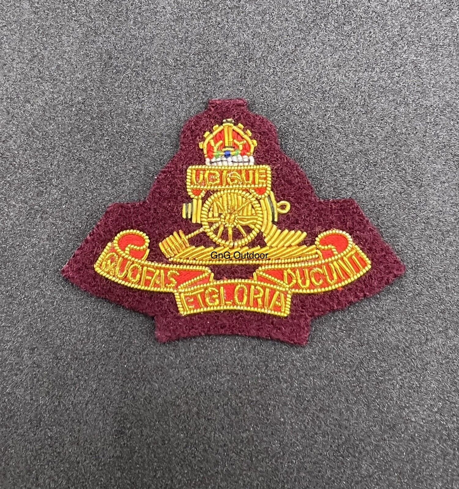 King’s Crown Royal Artillery Officers Beret Badge RA Maroon Background Cap Badge