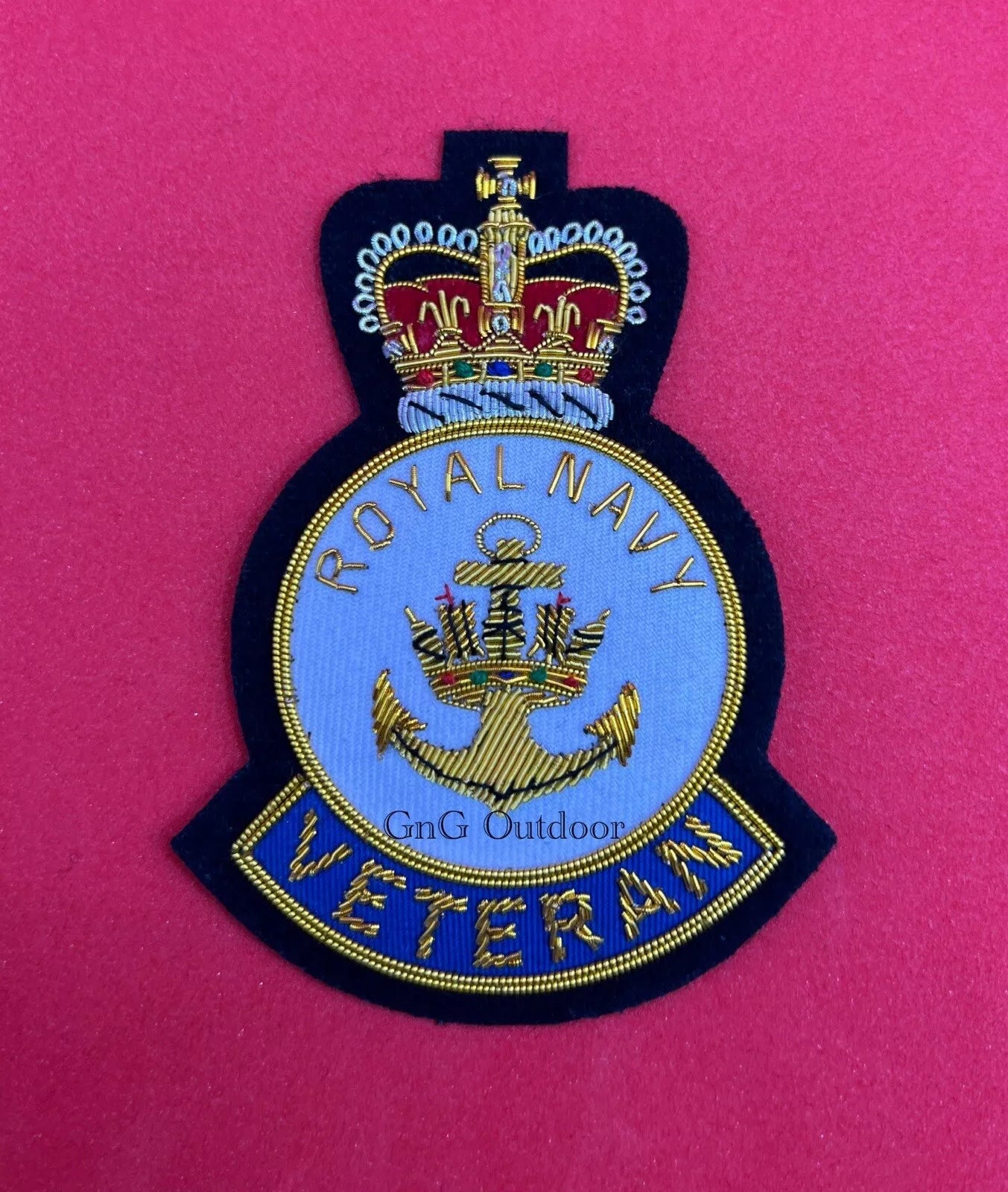 Royal Navy Veterans Blazer Badge HM Forces Hand Embroidered Bullion Wire Blazer Badge