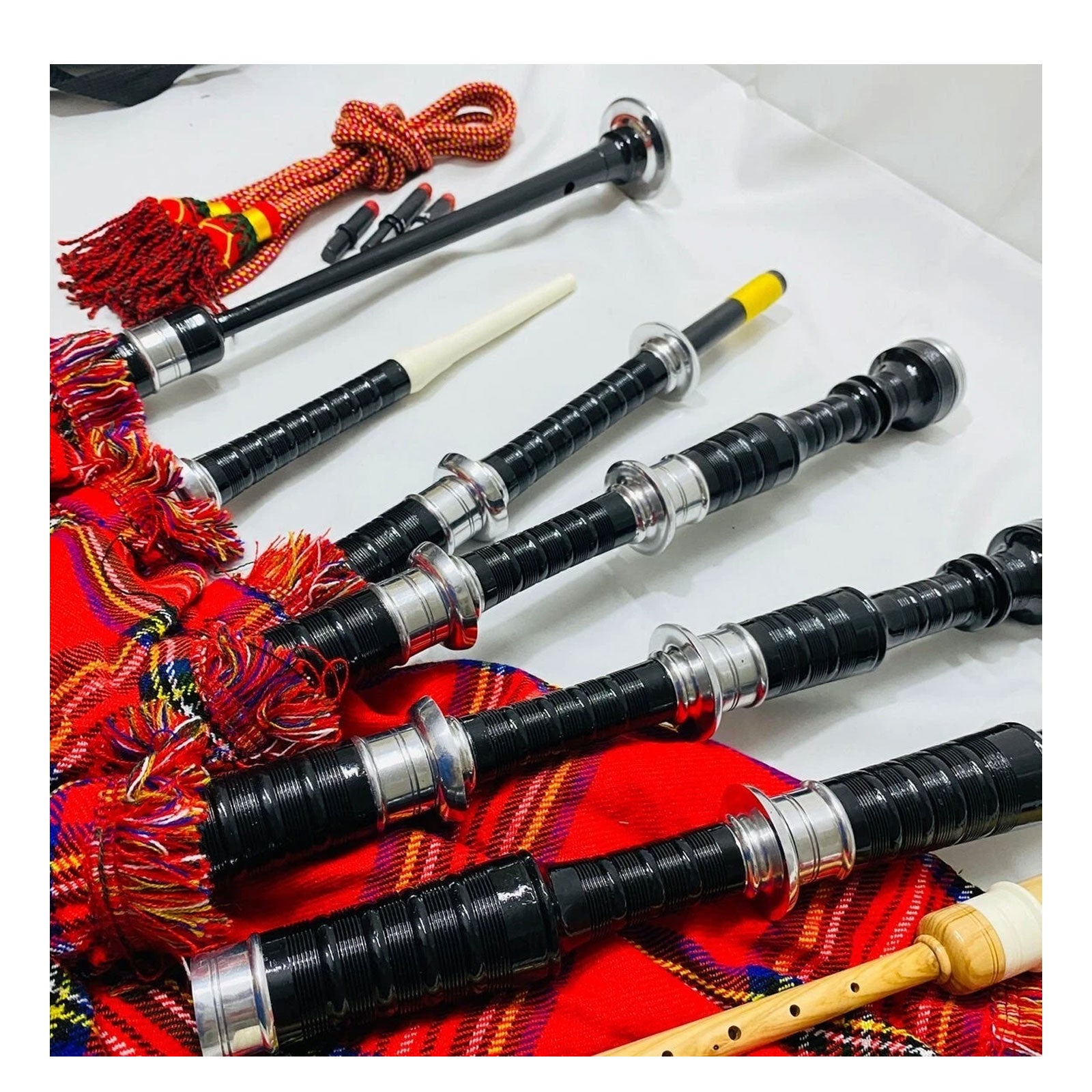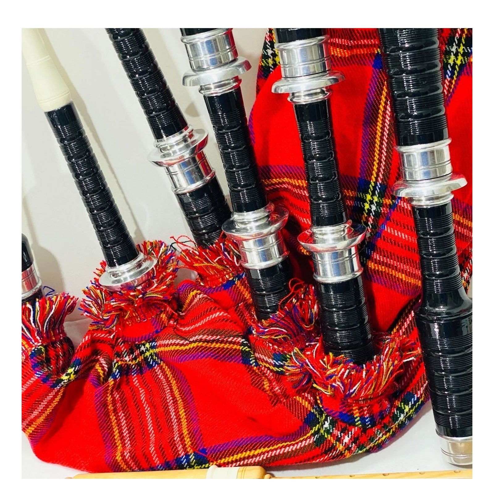 Scottish Bagpipe Royal Stewart Silver Mount Rosewood Highland Bagpipe
