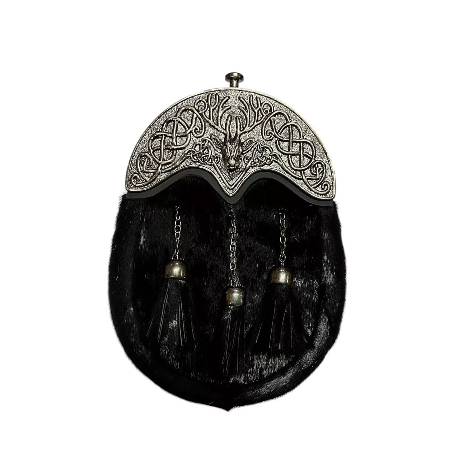 Scottish Black Sporran Stag Head Cantle Kilt Sporran With Chain Belt
