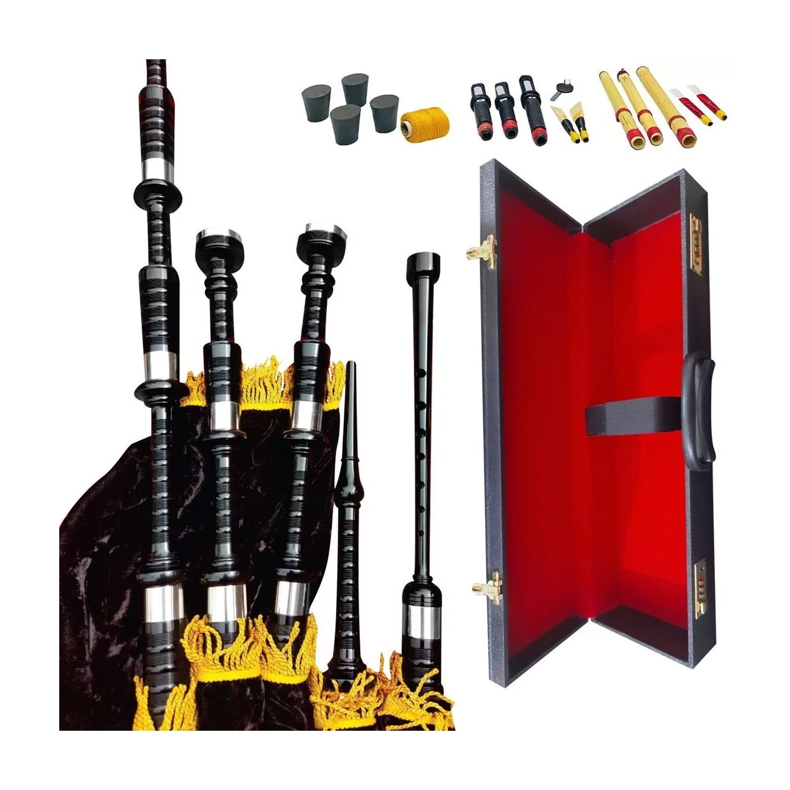 Scottish Great Highland Bagpipe Teflon Material Silver Mouth with Hard Case