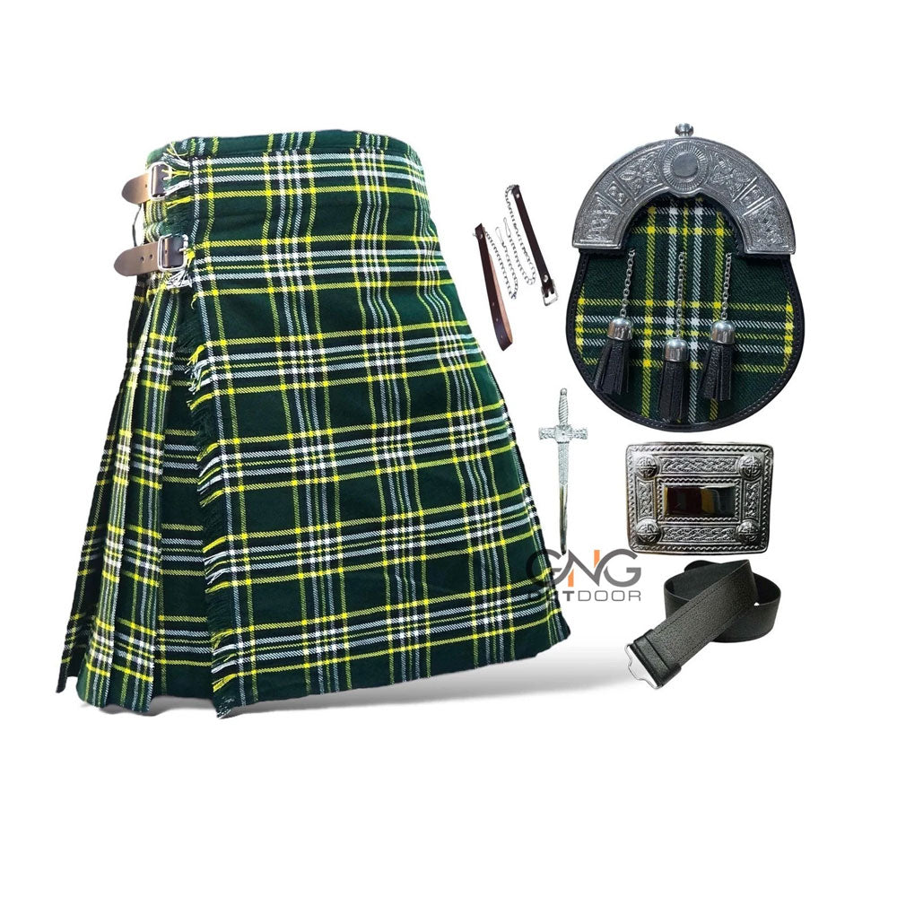 Scottish Men's 5 Pieces Tartan Kilt Sporran Outfit Wedding Kilt Set