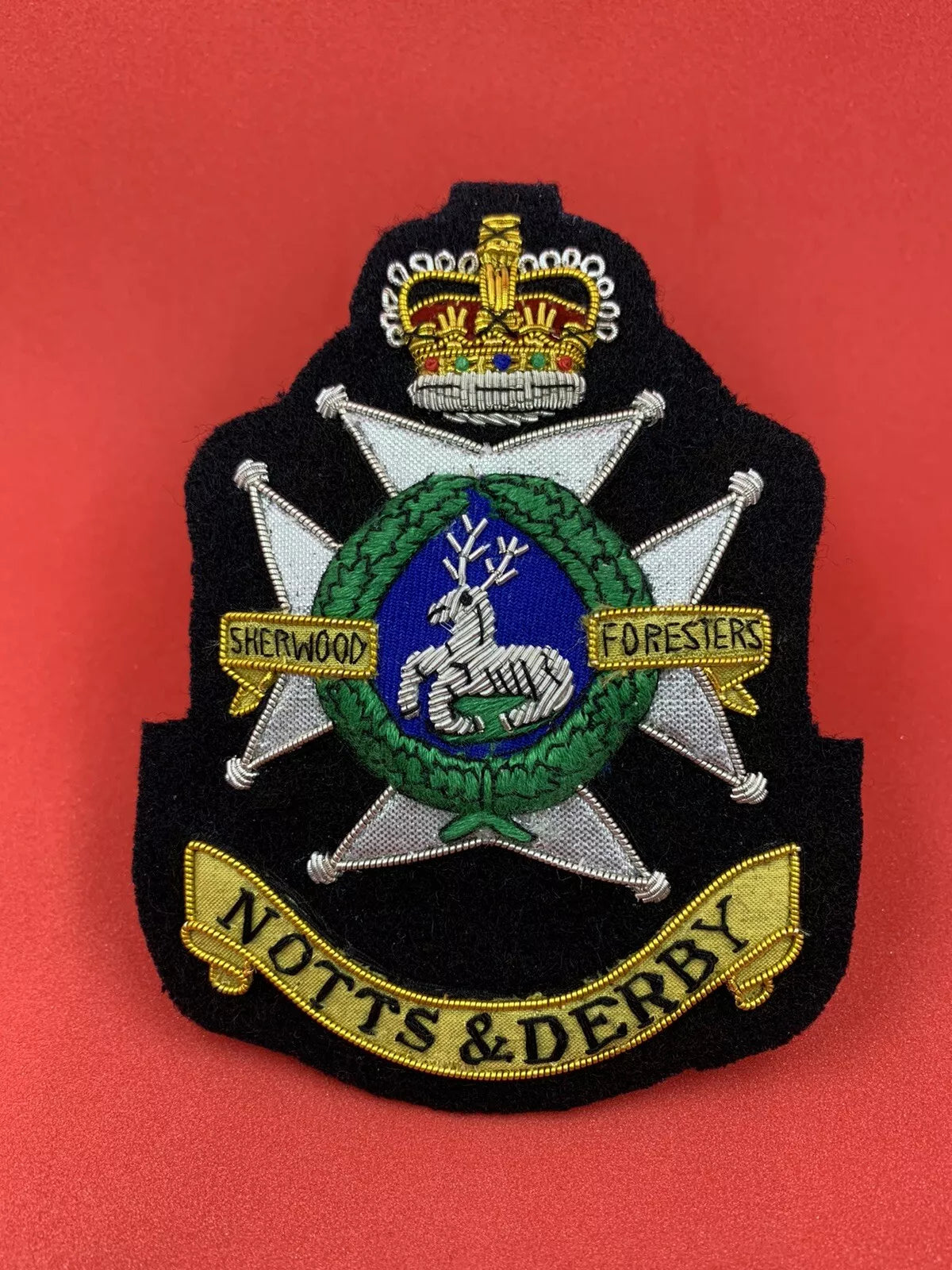 SHERWOOD FORESTERS (NOTTS AND DERBY) BLAZER BADGE BULLION AND WIRE BLAZER BADGE.