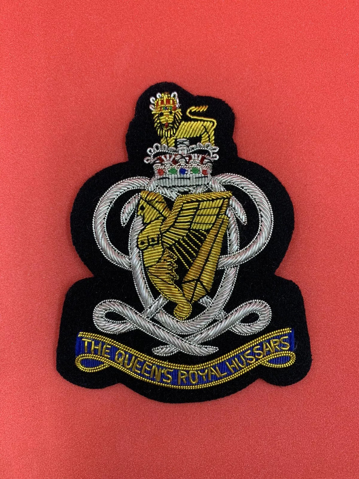 The Queen’s Royal Hussars Blazer Badge QRH Handmade Bullion & Wire Blazer Badge.