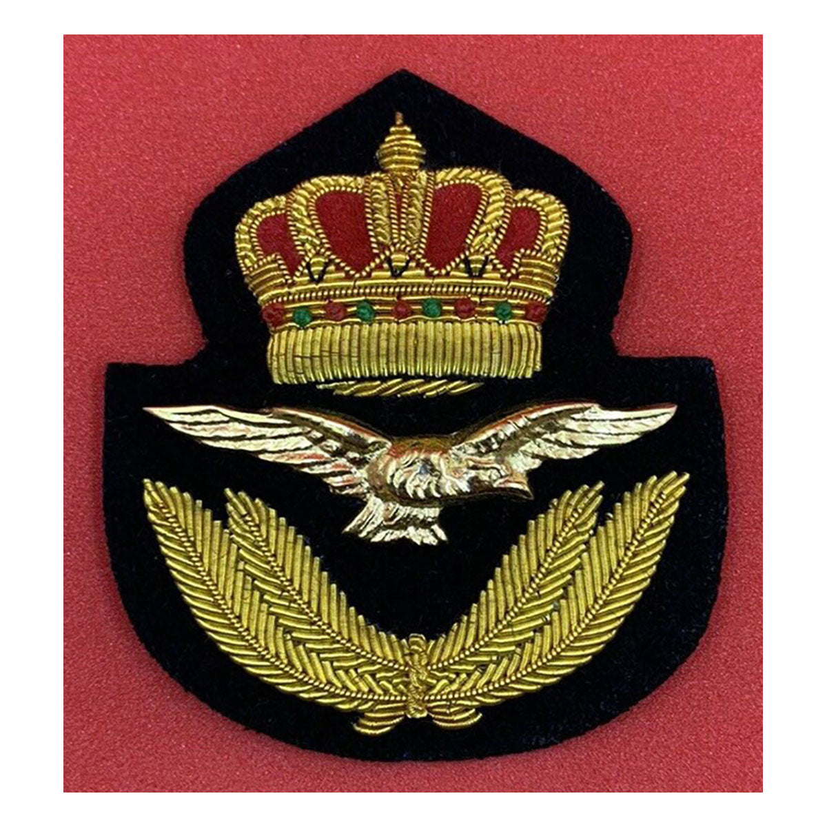 Handmade on black felt with gold bullion and wire